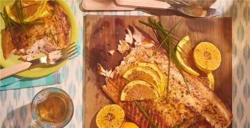Roasting everything on a sheet pan produces a golden colour and a wonderful, rich flavour for the fish and vegetables. A fresh squeeze of lemon over top is the perfect finish.