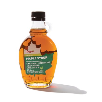 Deeply aromatic with an amber, rich taste, Longo’s Organic Maple Syrup delivers pure maple sweetness with a smooth, full bodied finish. Its organic character makes it a beautiful addition to waffles, desserts or warm beverages, adding natural depth and warmth. Try it in vinaigrettes, marinades or as a simple drizzle over seasonal fruit. Organic. Product of Canada.