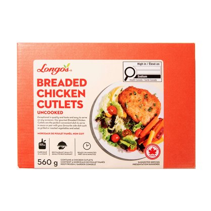 Crisp, golden and full of flavour, these breaded chicken cutlets deliver restaurant quality taste with effortless preparation. Longo’s Breaded Chicken Cutlets are perfect served with sauce, paired with roasted vegetables or layered into hearty sandwiches. A convenient and versatile option for quick meals. Handcrafted, restaurant quality, ready in 6 minutes.